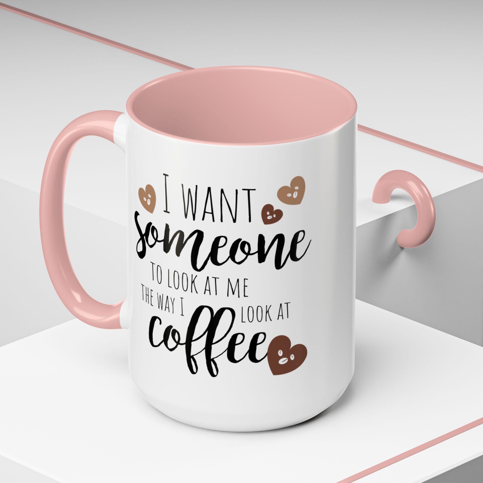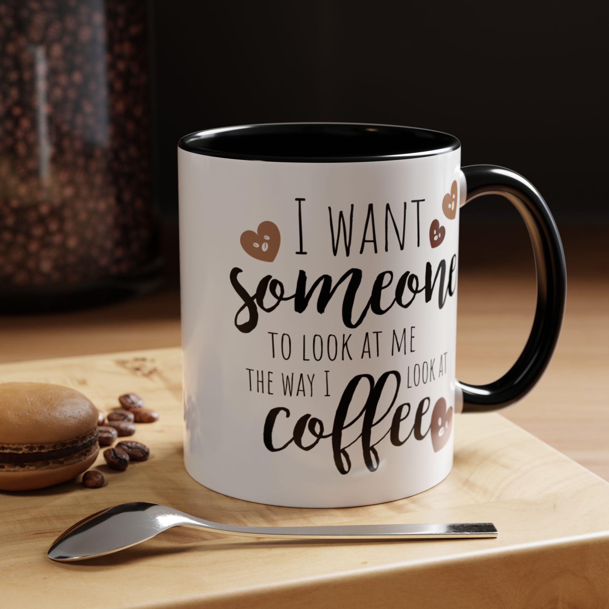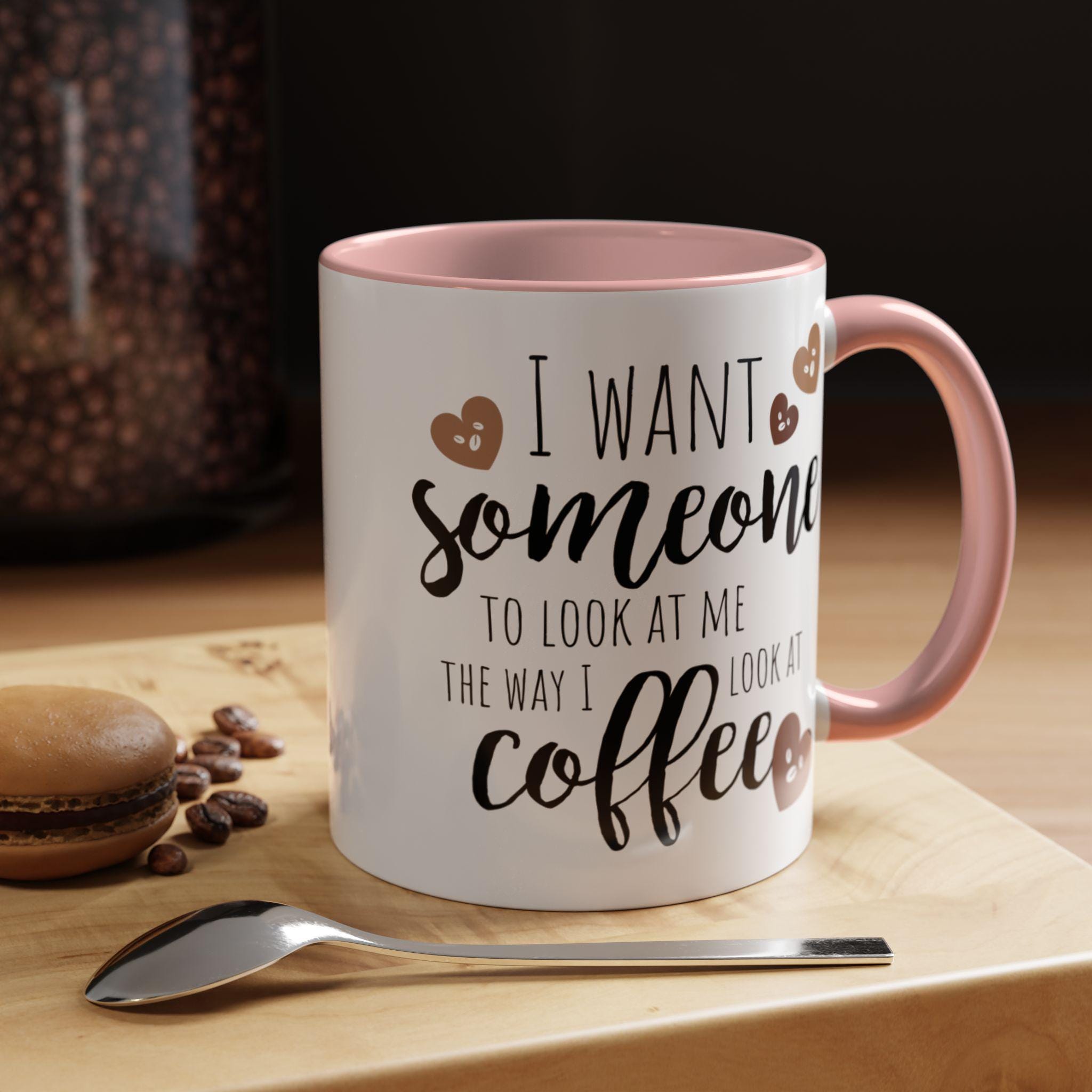 Start your day with a wink and a warm sip. This Accent Coffee Mug features a cheeky quote that celebrates your love for coffee—and maybe a little longing for someone who gets you like your morning brew does. With expressive fonts and heart-faced coffee beans, it’s a cozy conversation starter that adds humor and heart to your daily routine. Whether you’re enjoying a solo breakfast, powering through work, or gifting a fellow caffeine enthusiast, this mug brings personality to every pour.