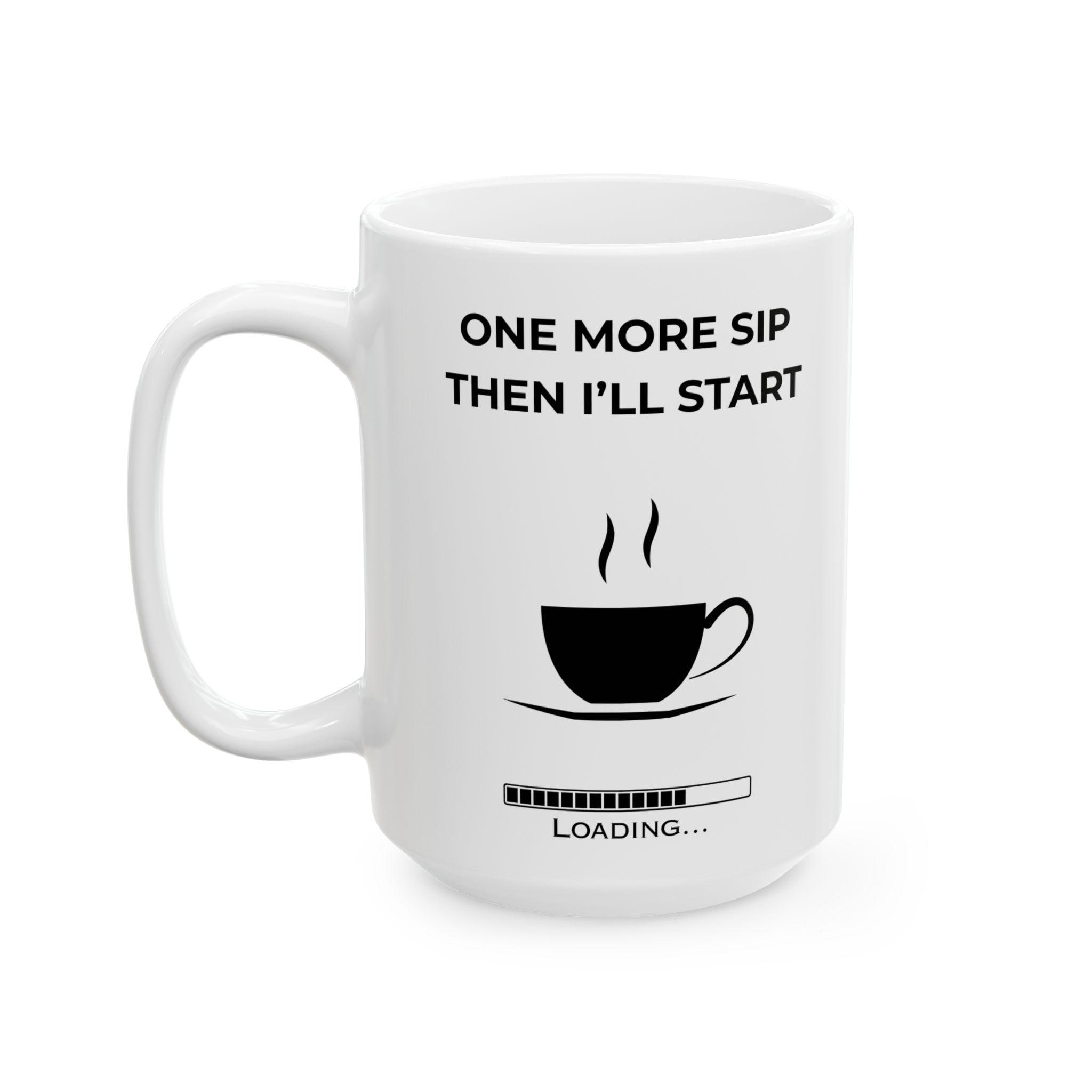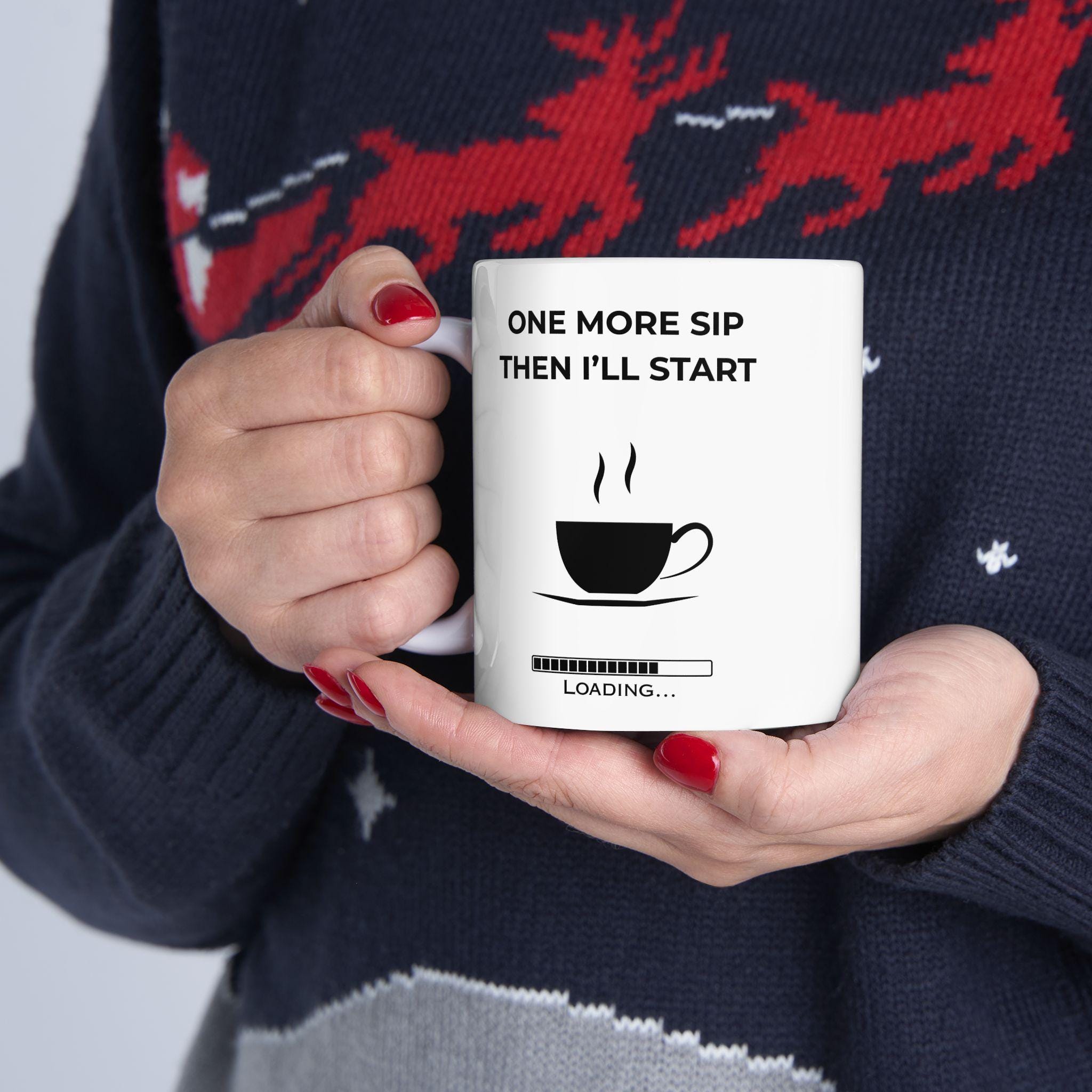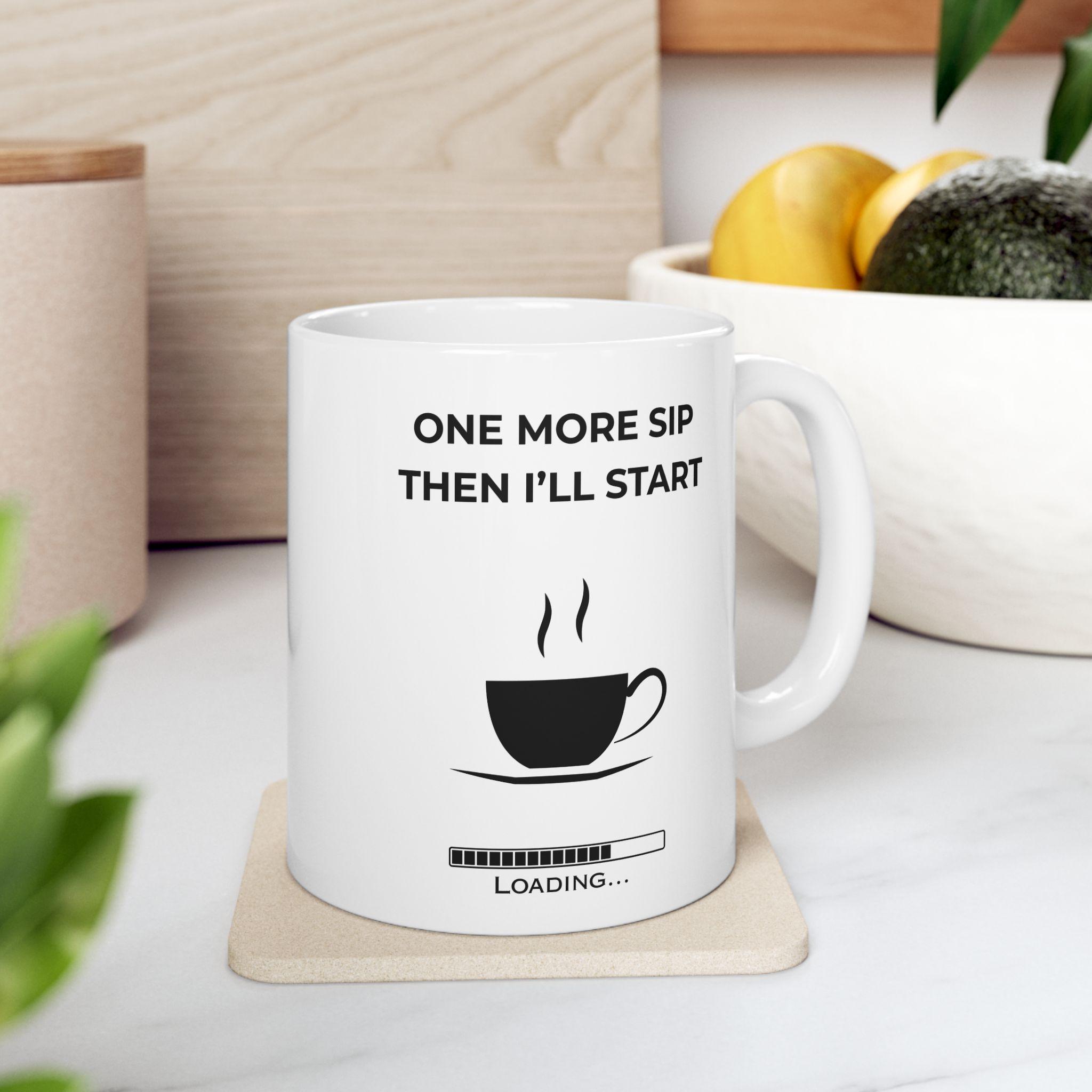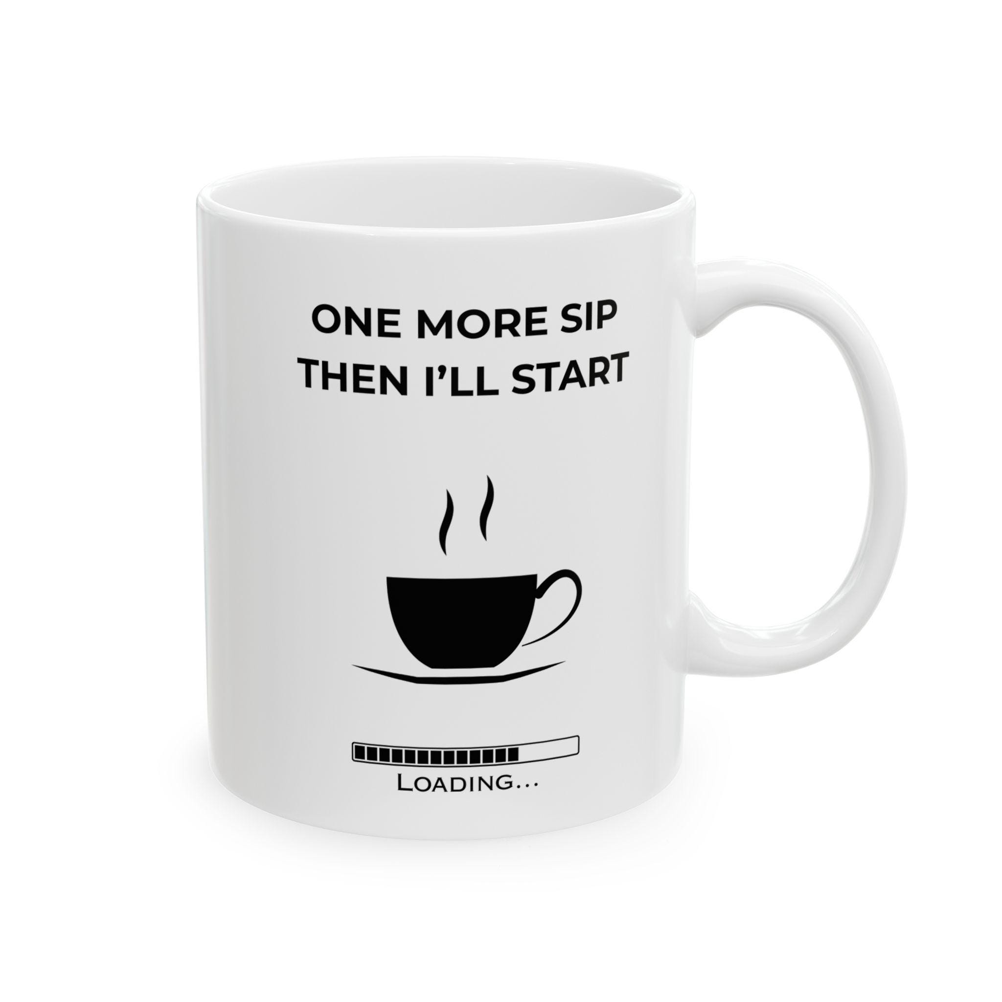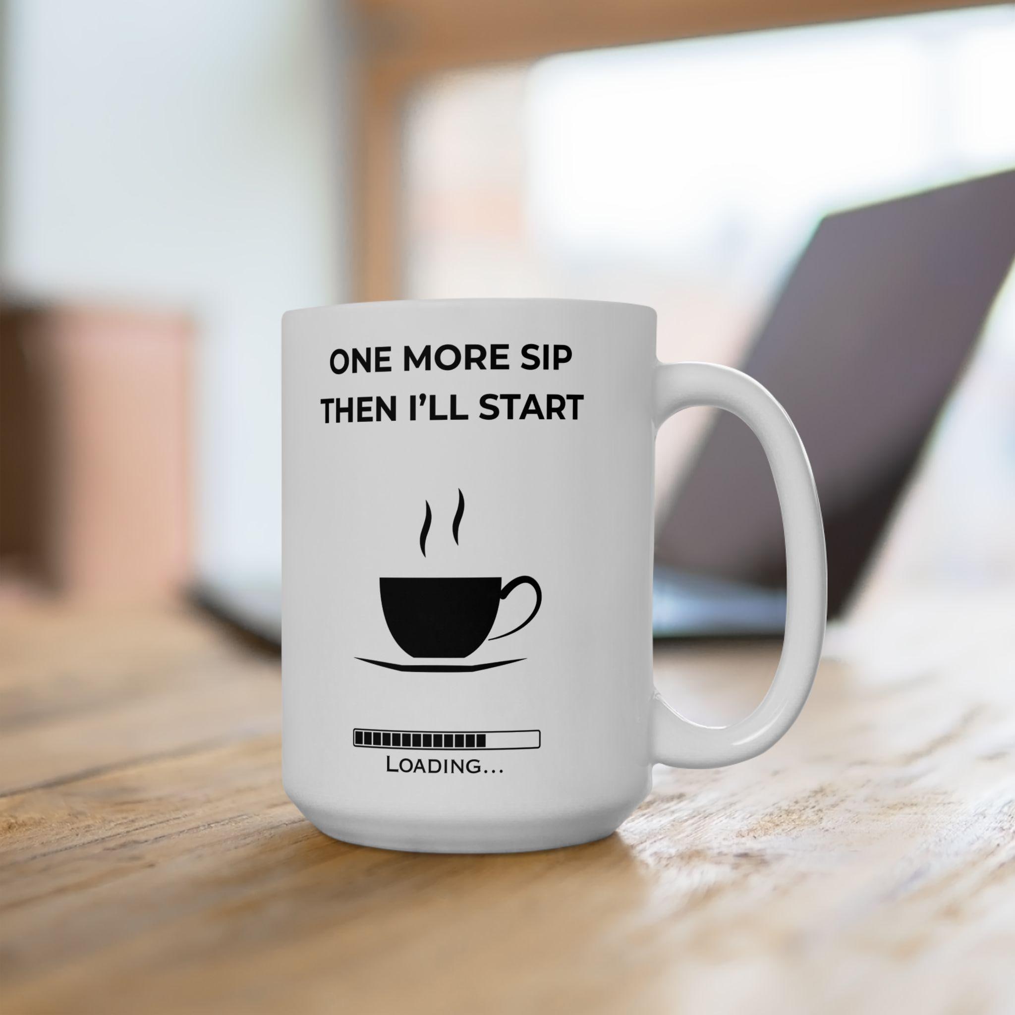 For the mornings when motivation needs… just one more sip. This clean, modern mug features the relatable phrase “One More Sip Then I’ll Start” paired with a minimalist loading bar — the perfect blend of humor and honesty for anyone who runs on caffeine before productivity.