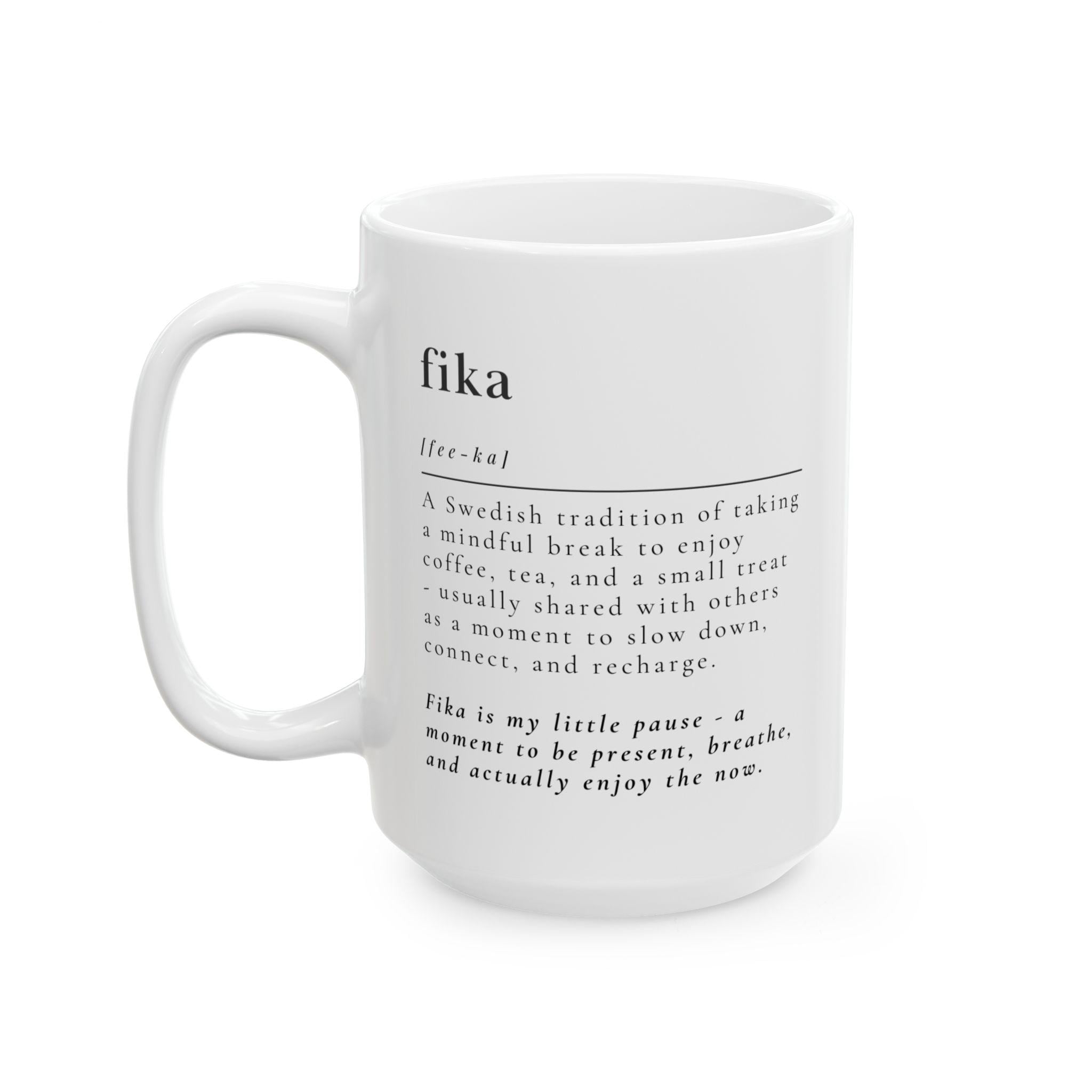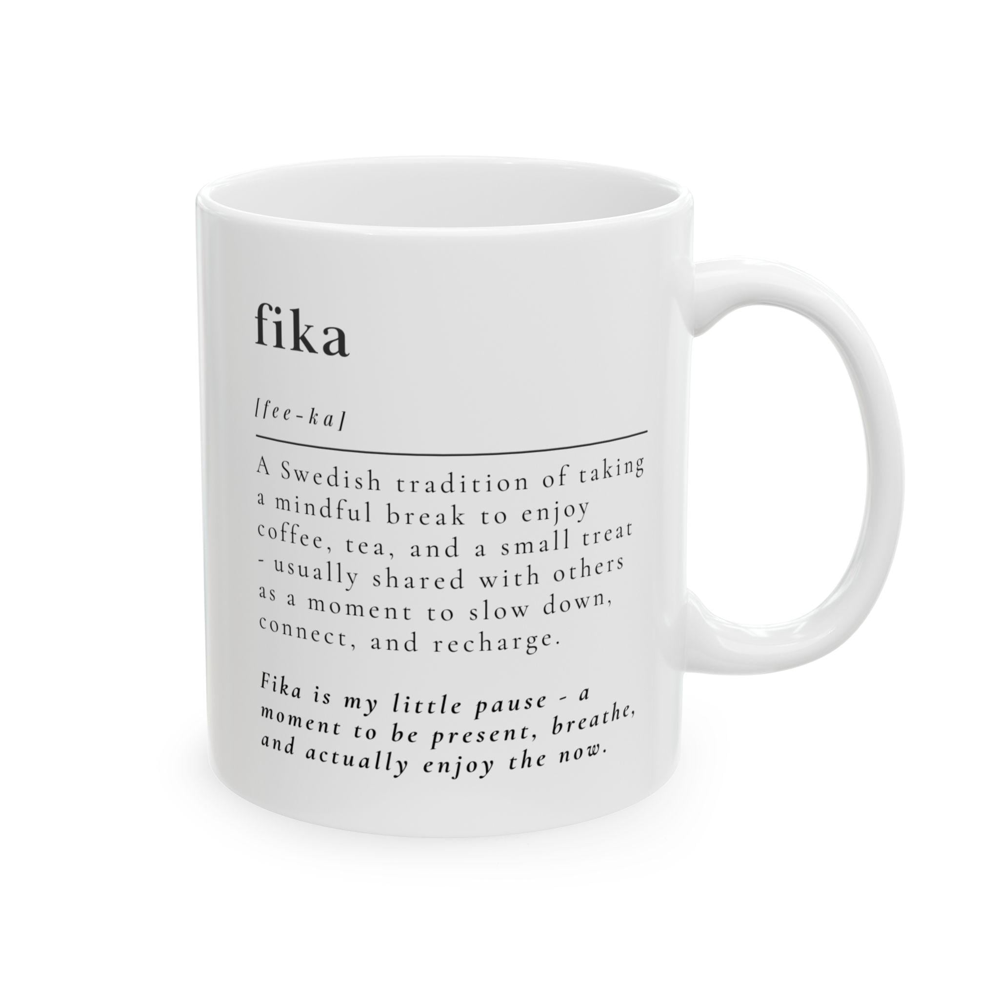 Bring a little Scandinavian calm into your day with this modern Fika definition mug. “Fika” (pronounced fee‑ka) is the Swedish tradition of taking a mindful pause to enjoy coffee, tea, and a small treat - a moment to slow down, connect, and recharge.